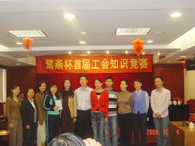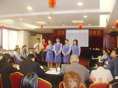 廈門鷺燕大藥房有限公司于2006年12月3日在廈門廬山大酒樓隆重舉行鷺燕杯首屆工會知識競賽,此次工會知識競賽由6個工會小組各自選派4名選手參加,比賽環(huán)節(jié)包括團隊介紹、啦啦隊互動、演講比賽、必答題、搶答題、猜詞秀、才藝表演等,形式多樣、內容豐富。比賽現場還邀請了一些供應商的代表作為嘉賓評委,為比賽進行現場點評及頒獎。